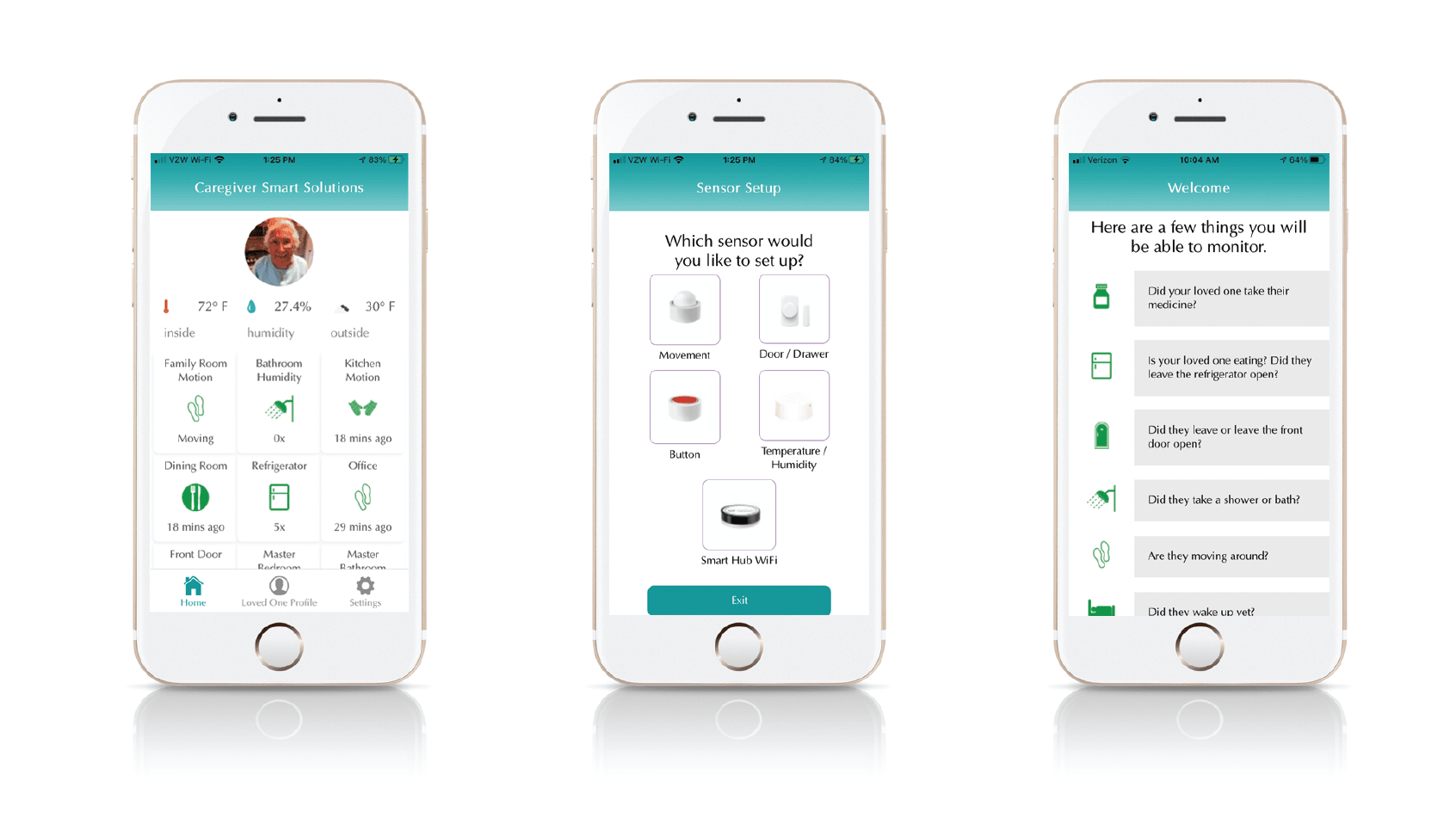 Connects sensors and streams real-time updates to the Caregiver Smart Solution App through Wi-Fi.